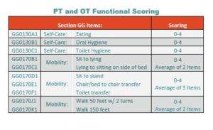 Once the Functional Score has been obtained, this is used in conjunction with the clinical reason for SNF stay (MDS item I0020B) to assign the resident into a Collapsed PT and OT clinical category. We will delve more into how that classification occurs in the next posting.