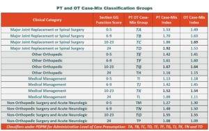 After the Collapsed Clinical Category is determined, the Functional Score is utilized to ascertain the PT and OT Case Mix Groupings and the corresponding Case-Mix Index.